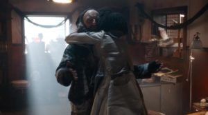 One of the most intelligent elements of the episode was the commentary it offered on the show itself. There’s a bit of overlap in this analysis, but that’s necessary to highlight these wonderful pieces of writing. At the start of the episode we have the jokes around the Doctor’s name, the revelation is that it was chosen to create mystery. Whilst in narrative this might have been a joke, in a meta context, it’s literally the reason why the show bears the moniker it does today. We have Missy assigning narrative roles to characters and the Doctor literally sitting back and watching Doctor Who with a packet of crisps. This is something that is echoed again later on but contextualised even better. We see Bill and Razor watching the Doctor as a form of escapism from the difficulties that they face daily, a beautiful scene which shows an exceptional insight from Moffat on the importance of the show. There are more metatextual moments too such as but not limited to: The Master’s suggestion of a better name for the episode, a commentary on the mannerisms of the Doctor and the Master’s disguise.