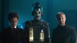 I’ll hold my hands up here and openly admit that I did not see this one coming. Ironic really considering my belief that announcing Simm so early would ruin his eventual appearance in the episode. I could not physically have been more wrong, with the narrative transpiring that I didn’t have an inkling of Razor’s identity until the scene he shared with Missy. This made the reveal a whole lot more effective as it had me questioning how I was able to miss something which should have been so obvious for so long. In truth the reason why myself and a few others I have spoken to believe this to be the case is due to the emotional investment in Bill and her struggle with partial Cyber-conversion. It’s a classic Moffat twist right up there with the single headed statues in The Time of Angels where he shifts the viewers focus enough to be able to pull the rug out from underneath them. I’m glad he got to do so one more time before he leaves.