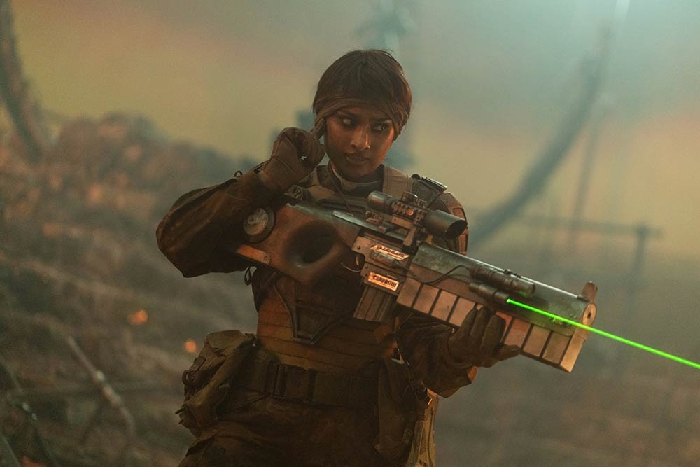 There were a few guest stars, but the biggest, of course, was the surprise appearance of future companion Veradu Sethu as Mundy (doing her best cosplay of Vasquez from Aliens). She was okay playing the fairly generic soldier gal, but it was too short a time to make any serious judgements. I think it will end up being more like Freema Agyeman’s Adeola introduction: the same actress, but she will end up playing a different character with some sort of relative connection. I didn’t care for the romantic element, it felt tacked on.