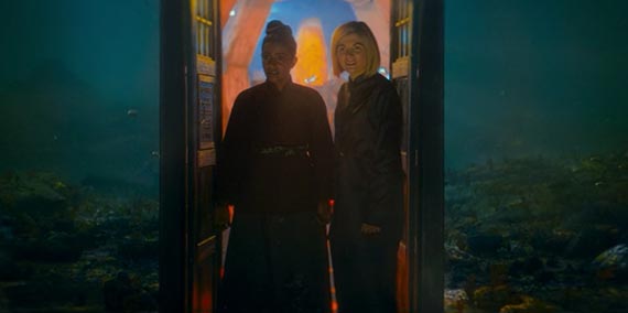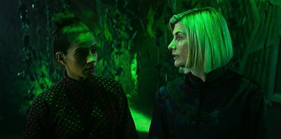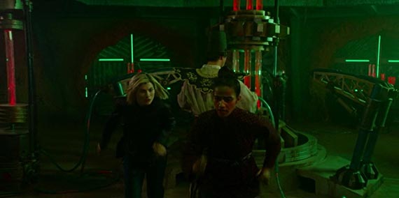 Only the scene where the Doctor admits that she wants to date Yasmin, the lights within the Sea Devil’s console room seemingly shifting to a romantic pink in response, is perfectly timed or deftly written. Note the continued use of color—the lights then shift to an angry red, when Thirteen admits that she can’t date Yaz—and how the scene’s rapidly expiring doomsday clock thematically reflects the Doctor’s lament that, “[A]t some point, time always runs out.”