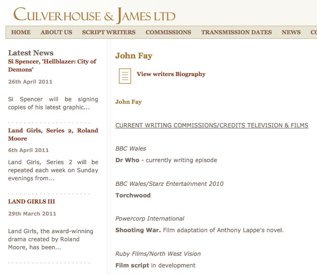 Fay is new to Doctor Who, but he wrote two Torchwood: Children of Earth episodes (Day 2 and 4) and also episode 9 (The Gathering) of the forthcoming Miracle Day.