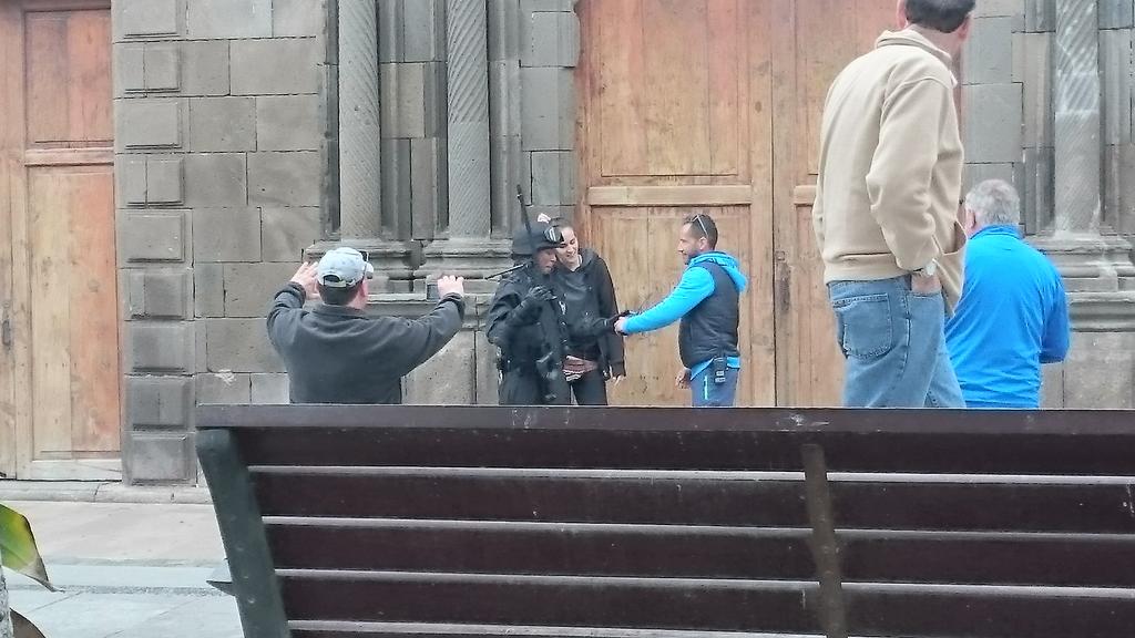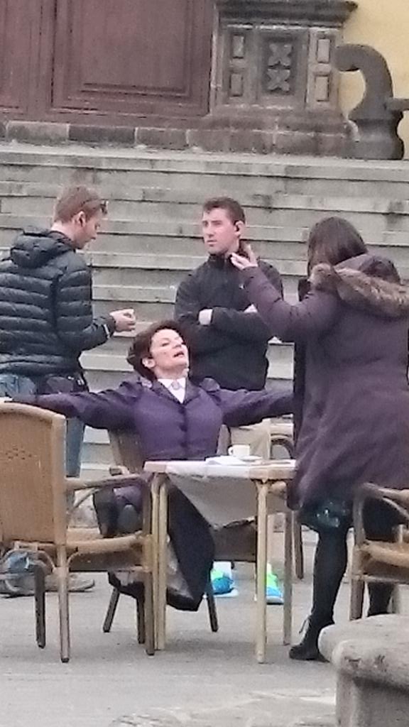 Onlooker description of the scenes (SPOILERS): Clara and Missy are at the table working together on the computer. They find something and suddenly Missy puts a bracelet on Clara’s wrist (may be a Vortex Manipulator). Crew screams “disappear”, then Missy and Clara leave the scene . Bodyguards look surprised around looking for them.